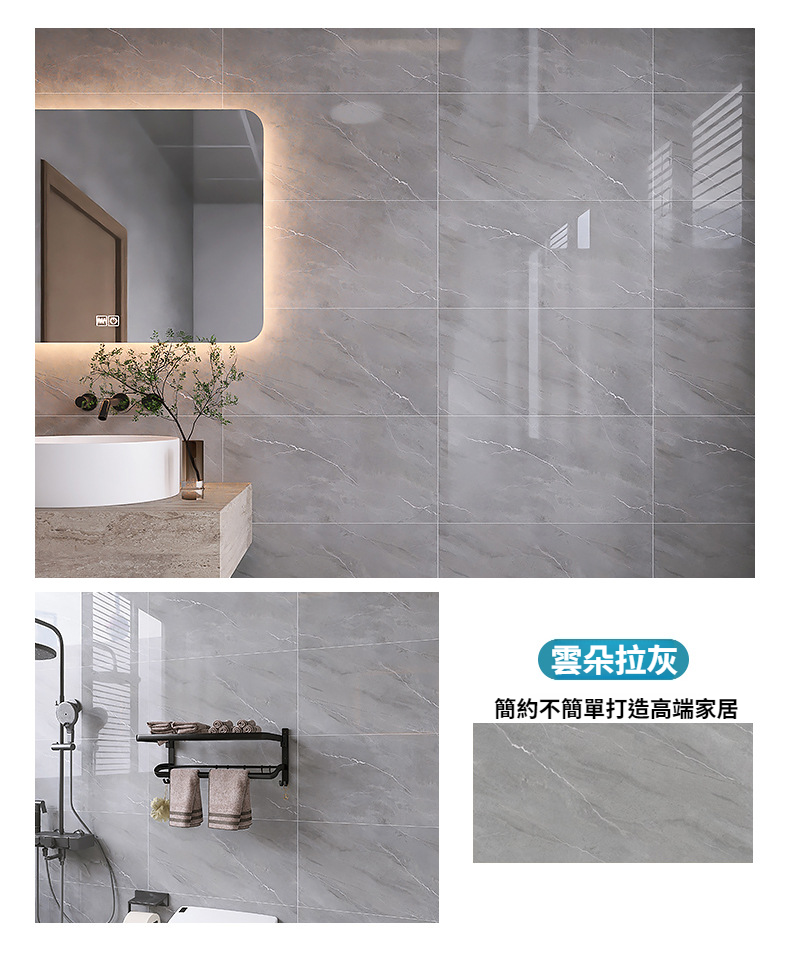 防水耐髒牆紙加厚仿大理石瓷磚貼